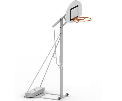+ Khung sắt: khung sắt sơn tĩnh điện tăng thẩm mỹ cho trụ bóng rổ, đồng thời tránh được những tác động xấu của thời tiết bên ngoài. Các hiện tượng như han rỉ, phai màu không có nếu đã được sơn tĩnh điện bên ngoài. Để giúp cho việc di chuyển trụ bóng rổ, phần chân của trụ có ghép những bánh xe và được gắn neo định vị chắc chắn, không rung lắc trong quá trình tập luyện hay thi đấu.